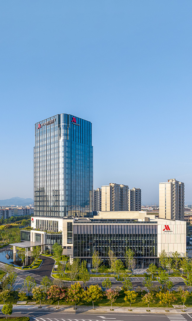 紹興上虞萬豪酒店是紹興地區首家萬豪品牌高端商務酒店,委托萬豪國際集團直接管理,現代美學的設計與國際酒店店的質感完美相融,追求卓越的臥龍精神更是與萬豪品牌的服務藝術相映成輝,為來賓打造了一處純享生活的和諧空間。